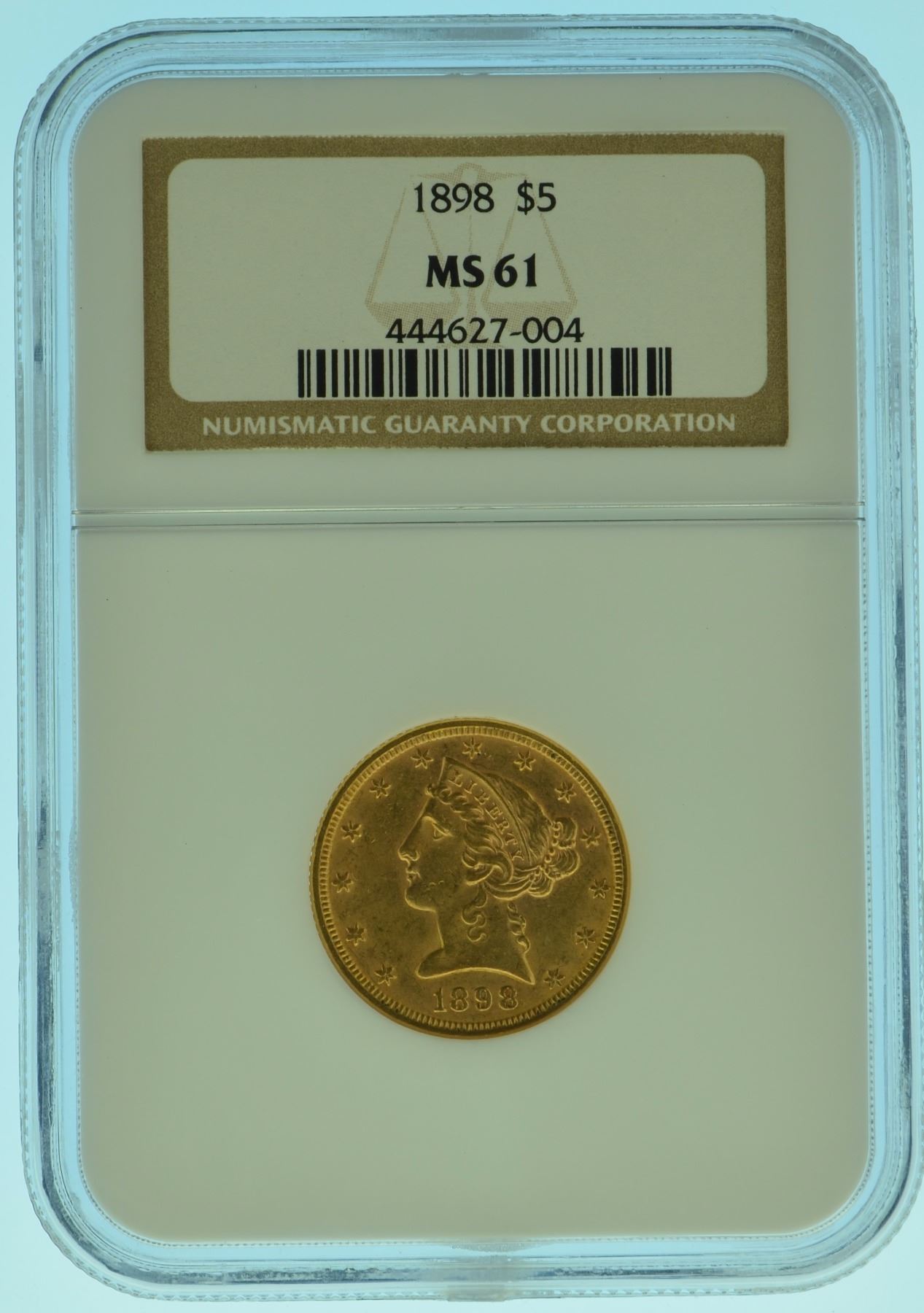 1898 $5 NGC MS61 Gold Liberty Half Eagle