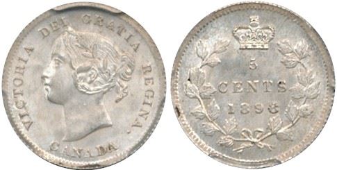 1898 5¢ PCGS MS66. Gem lustrous issue and tied for finest graded PCGS report. Rare and seldom seen better than MS63.