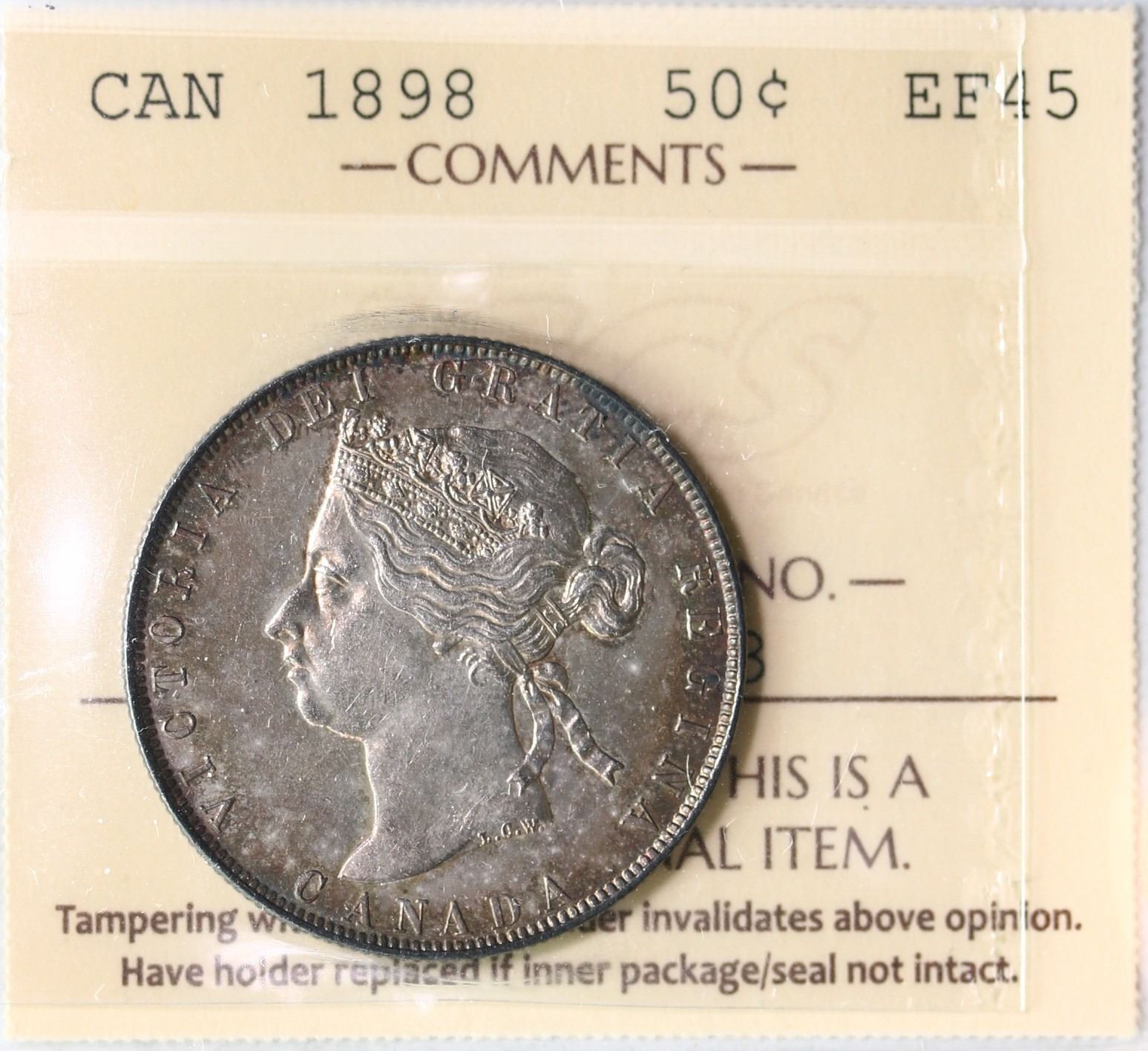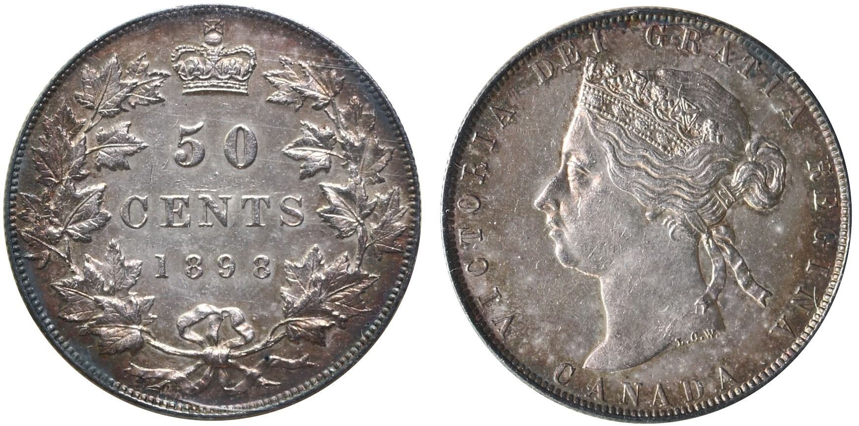 1898 50¢ ICCS Choice Extra Fine-45. Strong details with light silver, gold and russet tones.