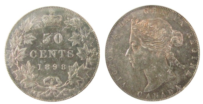 1898 50¢ PCGS MS63. Intense gold to brown tones. Rare in this condition.