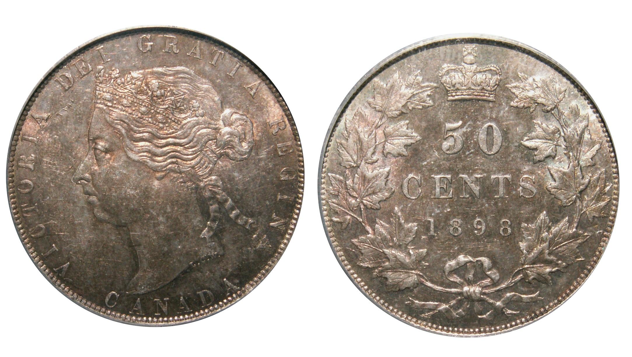 1898 50¢ PCGS MS63. Superb toning and eye appeal. A very rare date in choice uncirculated.