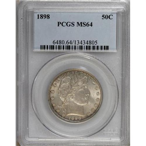 <B>1898 50C MS64 PCGS.</B></I> A crisply impressed 19th century Barber half, subtly lustrous beneath peach, pastel yellow, and amethyst patina at the margins. A faint planchet defect is noted to the left of Liberty's lips. Population: 43 in 64, 20 finer (8/07).<BR><BR><B>Coin Engraver:</B> Charles E. Barber<BR><BR><b>Shipping:</b> Coins & Currency (<a target="_blank" href="http://www.heritageauctions.com/common/shipping.php">view shipping information</a>)