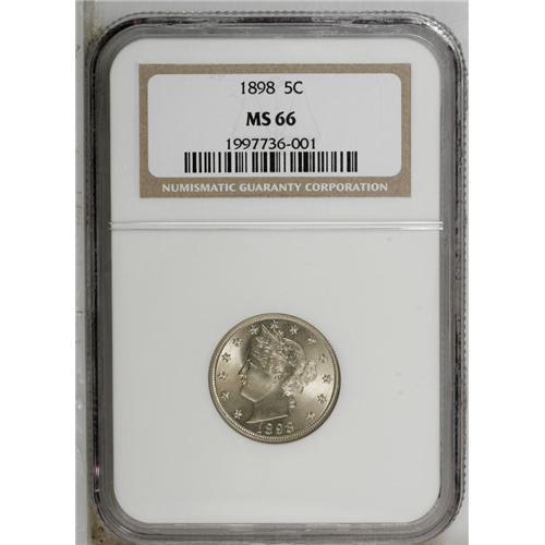 1898 5C MS66 NGC. A pretty piece with yellow-orange pa