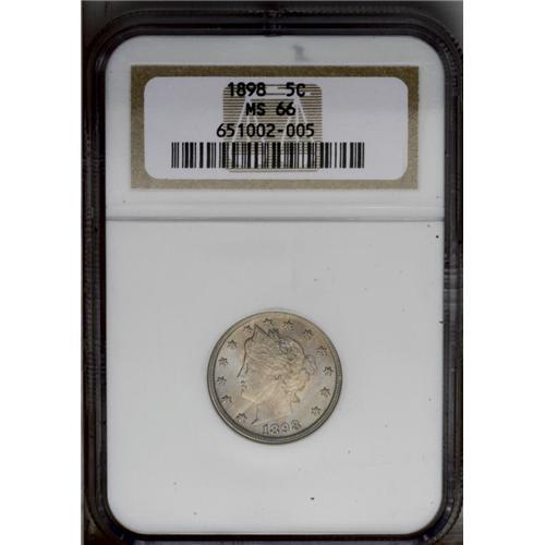 "1898 5C MS66 NGC. Glowing, satiny surfa"