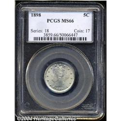 <B>1898<5C> MS66 PCGS.</B></I> Satiny and sharply detailed except for a touch of isolated softness on the obverse stars and at the base of the wreath. Bright and essentially untoned throughout with no mentionable blemishes and just a few tiny carbon flecks on the reverse. Population: 10 in 66, 1 finer (7/04). <BR><BR><B>Important notice:</B> Heritage usually auctions material at the rate of 200-250 lots per hour. On some occasions eBay Live bid software or the Internet may not be able to keep up with the pace of the auction. We recommend placing a realistic absentee bid now as insurance to avoid disappointment. Occasionally the auctioneer may eliminate or reject an eBay Live bid, and the auctioneer may also reopen a lot after the close of the eBay live bidding (usually because we missed an audience bid), and may reject your bid even if it shows you as the winning bidder. By bidding via eBay Live, you agree that Heritage may award the lot to another bidder at its sole discretion under the circumstances described above or any other reasonable circumstances. Since eBay bids are not shown to us until we open the lot on the floor, we treat those bids just like floor bids. In most cases the floor responds before the eBay bid is presented to us, due to Internet lag time, so for consistency we have made it a policy that floor bids are always considered first over tie eBay live bids. Also please note that all Heritage lots purchased through eBay Live carry a 20% Buyer's Premium. Please make sure you read the Terms and Conditions before you bid. </span></font></tr></table></td></tr></table>