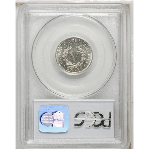 <B>1898<5C> PR65 Cameo PCGS.</B></I> Wisps of lilac patina drift on the moderately reflective champagne surfaces of this Gem. Crisply struck and appealing. Census: 14 in 65 Cameo, 13 finer (7/06).