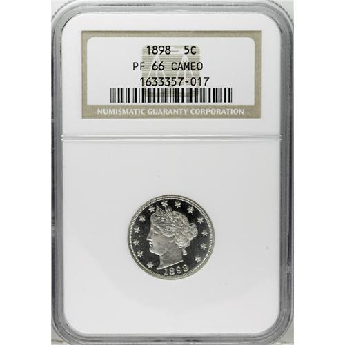 1898 5C PR66 Cameo PCGS. Untoned with pleasing contras