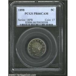 1898 5C PR66 Cameo PCGS. With the exception of the first two star centrils on the obverse and the ea