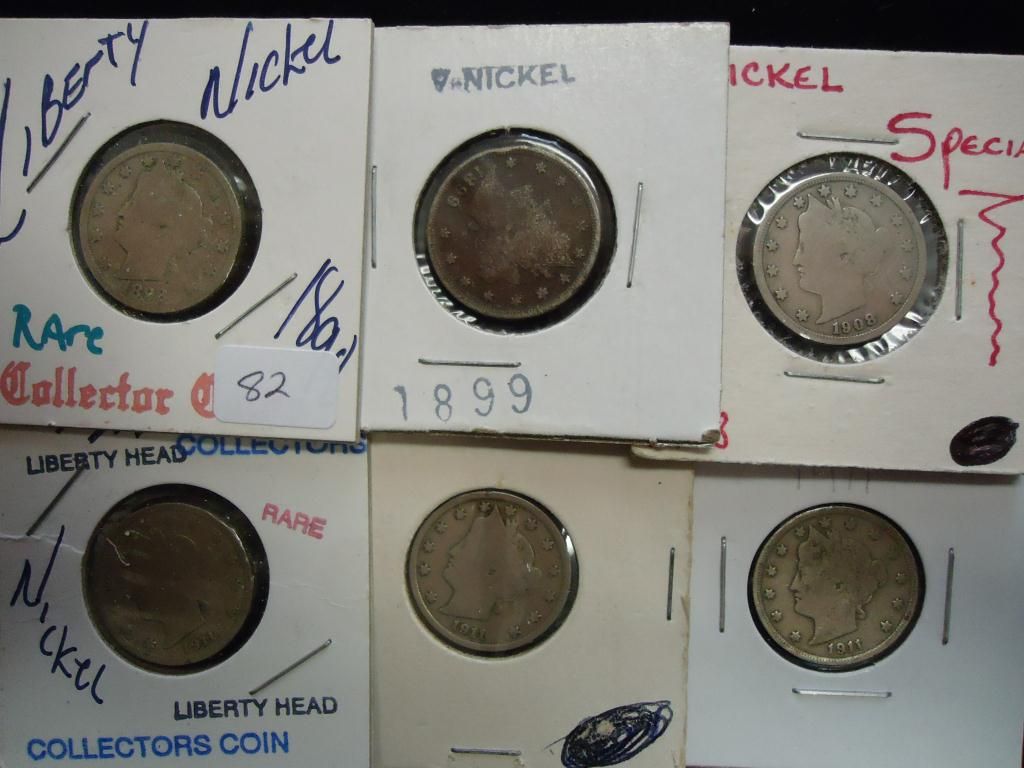 1898,99,08 & 3-11 LIBERTY "V" NICKELS 6 COINS