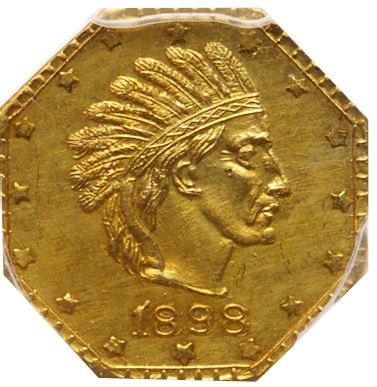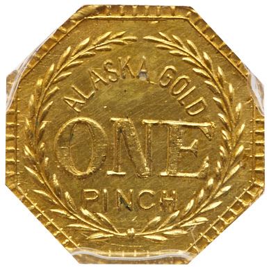 1898 Alaska 1 Pinch Gold. X-Tn6, HK-844, Rarity 6. PCGS graded MS-63. Estimated Value 400 - 450