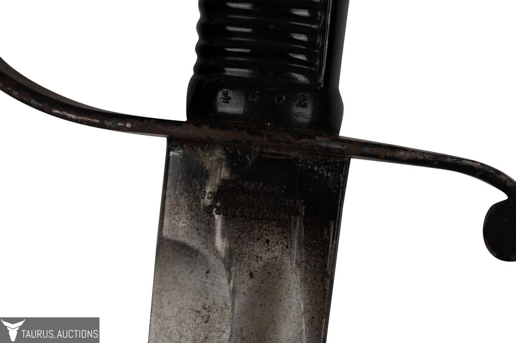 Item/Description: German made, Argentine Calvary Saber with metal scabbard. Blade marked: Ejercito Argentino. Ricasso is marked: Weyersberg, Kirschbaum & Co. / Solingen. Other markings include: 4602 / Half sun burst. (Soldiers) name engraved onto blade. Scabbard is marked: 4617 and with a circle "RA".