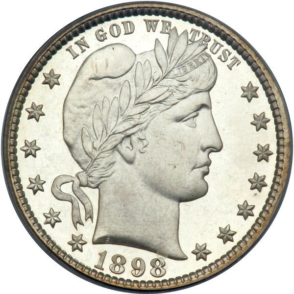 1898. PCGS graded Proof 66 Deep Cameo. CAC Approved. A fully white gem with radiant frosted devices providing cameo contrast. Only 735 minted. Pop 5; 16 finer, 11 in 67, 4 in 68, 1 in 68+ (PCGS # 95684) .
