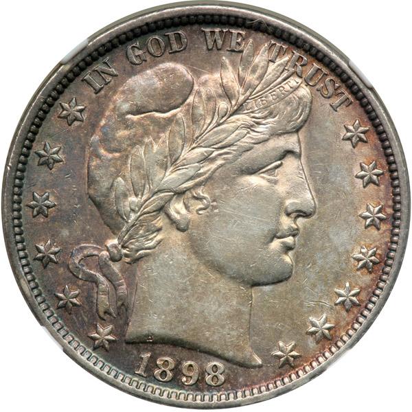 1898. NGC graded AU-50. Nice violet-golden toning on the obverse.