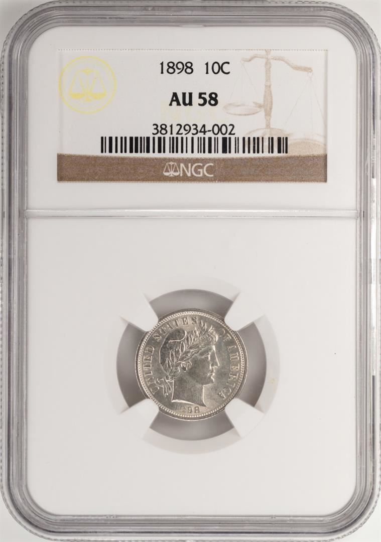 One 1898 Barber Dime Coin NGC AU58. NGC Certified.