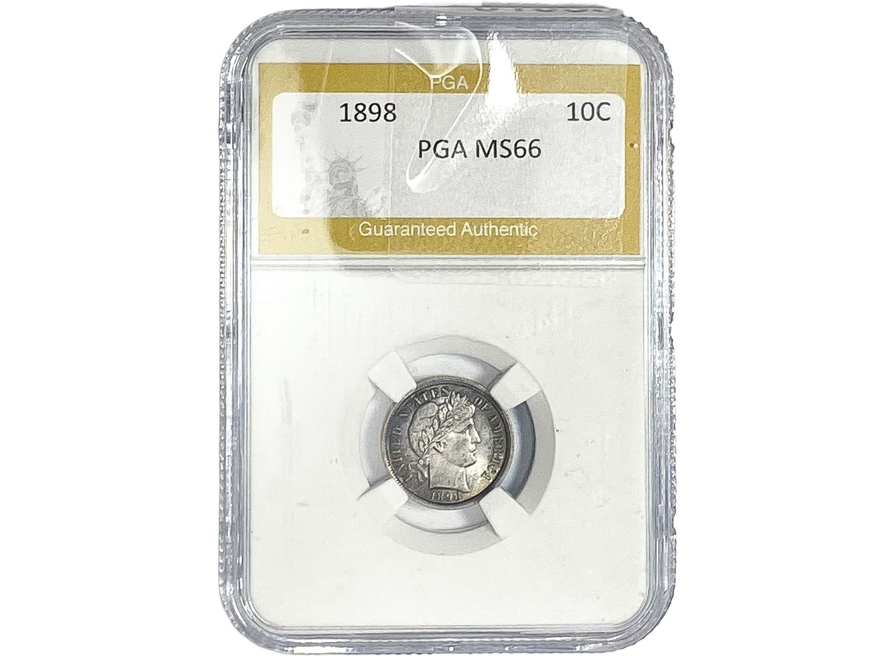 COINS AND CURRENCY LISTED IN GSA’S CATALOG AS GRADED AND ENCAPSULATED BY PCGS, NGC, ANACS, ICG, PCGS CURRENCY, PMG, PCGS BANKNOTE GRADING, CMC OR ANY OTHER THIRD-PARTY GRADING SERVICE ARE LIKEWISE SOLD “AS-IS” EXCEPT AS EXPRESSLY SET FORTH HEREIN. ALL THIRD-PARTY GRADING SERVICE GUARANTEES, INCLUDING AUTHENTICITY, ARE THE SOLE RESPONSIBILITY OF THE THIRD-PARTY GRADING SERVICE AND NOT WARRANTIES OR GUARANTEES OF GSA. BIDDERS SHOULD CONTACT THESE THIRD-PARTY GRADING SERVICES DIRECTLY WITH RESPECT TO ANY CLAIMS OR QUESTIONS THEY MAY HAVE CONCERNING THEIR GUARANTEES AND WARRANTIES. BIDDERS ACKNOWLEDGE AND AGREE THAT AUCTIONEER IS NOT BOUND BY OR LIABLE FOR ANY OPINION OR CERTIFICATION BY ANY THIRD-PARTY GRADING SERVICE. REMOVAL OF A PRODUCT FROM ITS PROTECTIVE CASING OR HOLDER OR ALTERATION OF ANY COIN HOLDER WAIVES ALL RIGHTS CONCERNING THE PRODUCT CONTAINED THEREIN.