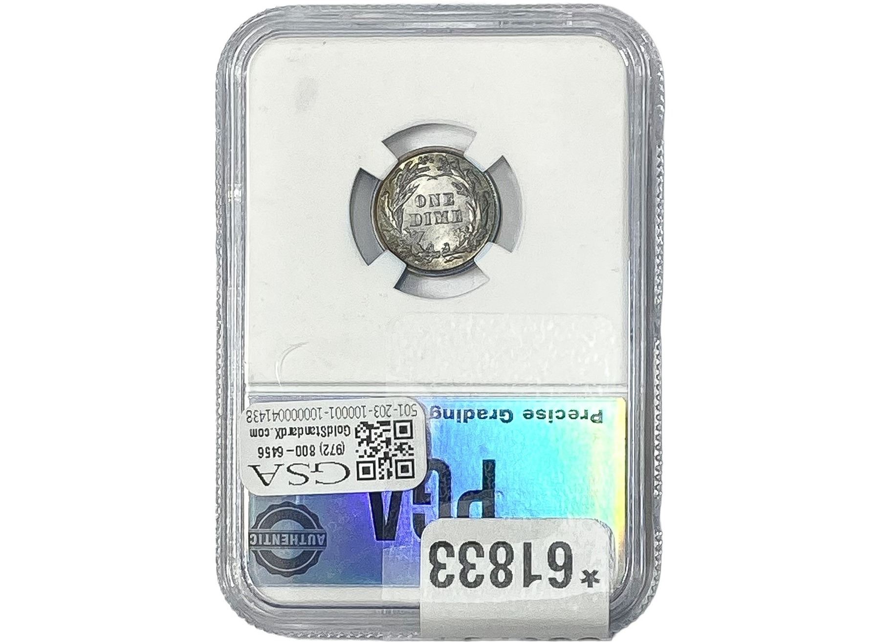 l. All non-certified coins and currency are guaranteed genuine, but are not guaranteed as to grade, since grading is a matter of opinion, an art and not a science, and therefore the description rendered by GSA or any third-party grading service may not agree with the opinion of others (including trained experts), and the same expert may not grade the same item with the same grade at two different times. GSA may, but is not obligated to, express an opinion as to non-certified numismatic items, in GSA’s opinion, or by its employees’ experience and the current interpretation of the American Numismatic Association’s standards as of the date the catalog was prepared. There is no guarantee or warranty expressed or implied that the grading opinions utilized by GSA, if any, will meet the standards of any grading service at any time in the future.