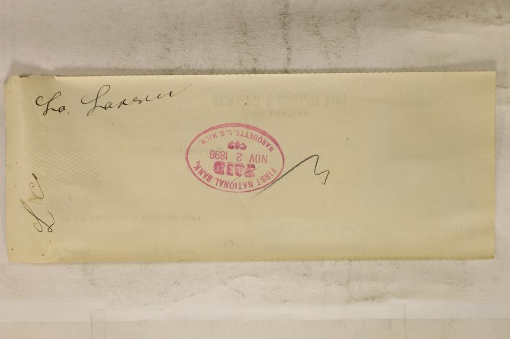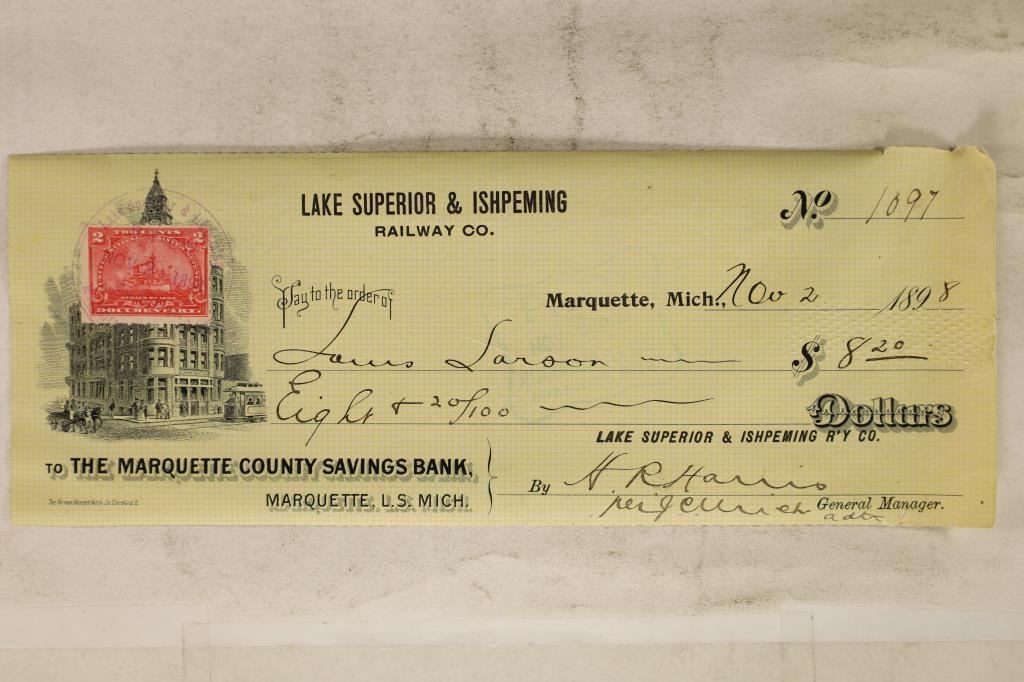 ISHPEMING RAILWAY COMPANY, HAND SIGNED AND NUMBERED WITH CANCELLED TWO CENT STAMP