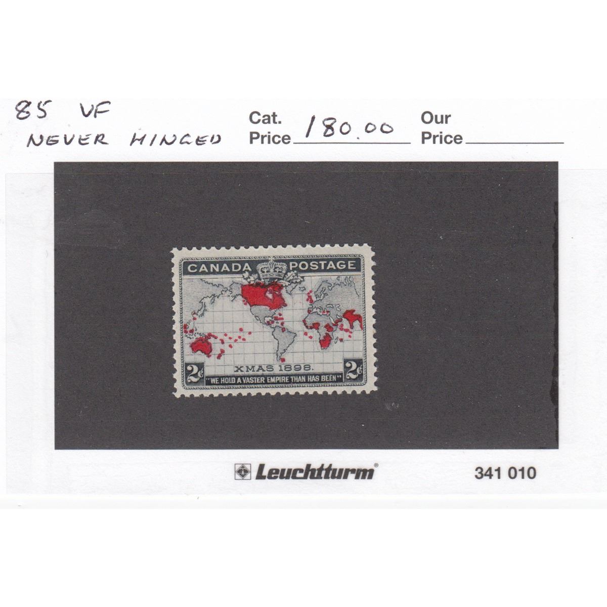 1898 Canada #85 Christmas, Map of British Empire 2-cent Stamp VF, Never Hinged