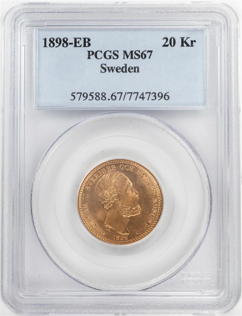 One 1898-EB Sweden 20 Kroners Gold Coin PCGS MS67. PCGS Graded.