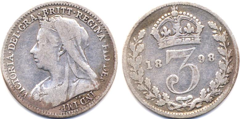 1898 GREAT BRITIAN SILVER 3 PENCE-CIRC