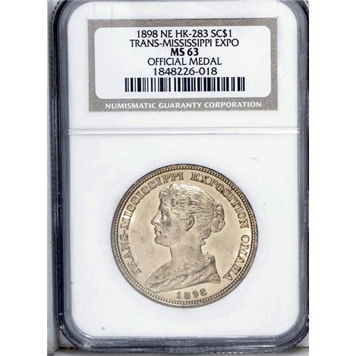 <B>1898 HK-283 Trans-Mississippi Exposition, MS63 NGC.</B></I> Issued "to display the products, manufactures and industries of the states and territories west of the Mississippi," struck at the Mint exhibit from Philadelphia Mint dies. About 25,000 pieces were struck in all varieties.