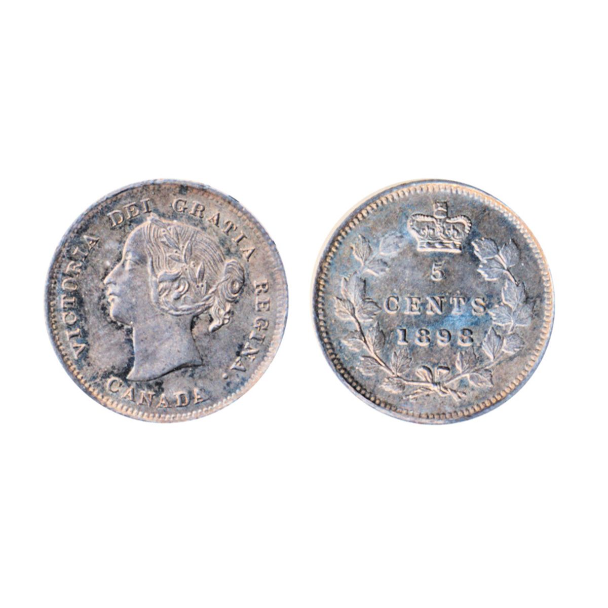 1898. ICCS Mint State-64. Medium heavy green-blue toning, with luster underneath. A high end example.