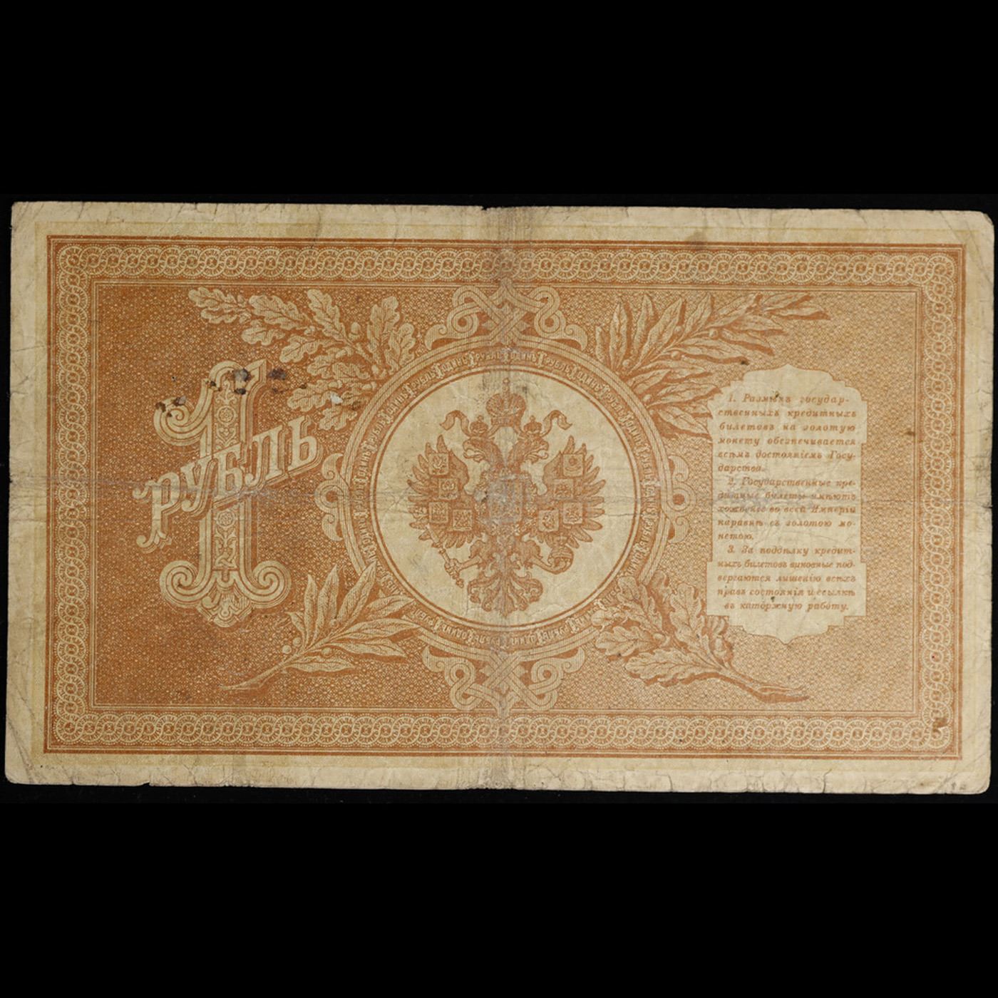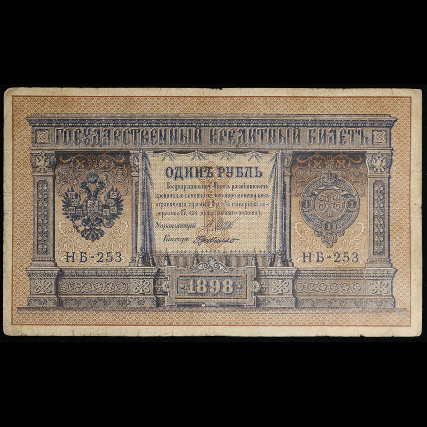1898 Imperial Rissia 1 Ruble Note P# 1D Grades vf++. Up for auction we have a beautiful, ornate Imperial Ruble note from the final decade of the Russian Empire under Tsar Nicholas II, which managed to survive through the Russian Revolution and Civil War. These notes became relatively useless in the early Soviet period, due to hyperinflation and other factors, and many were lost or destroyed.
