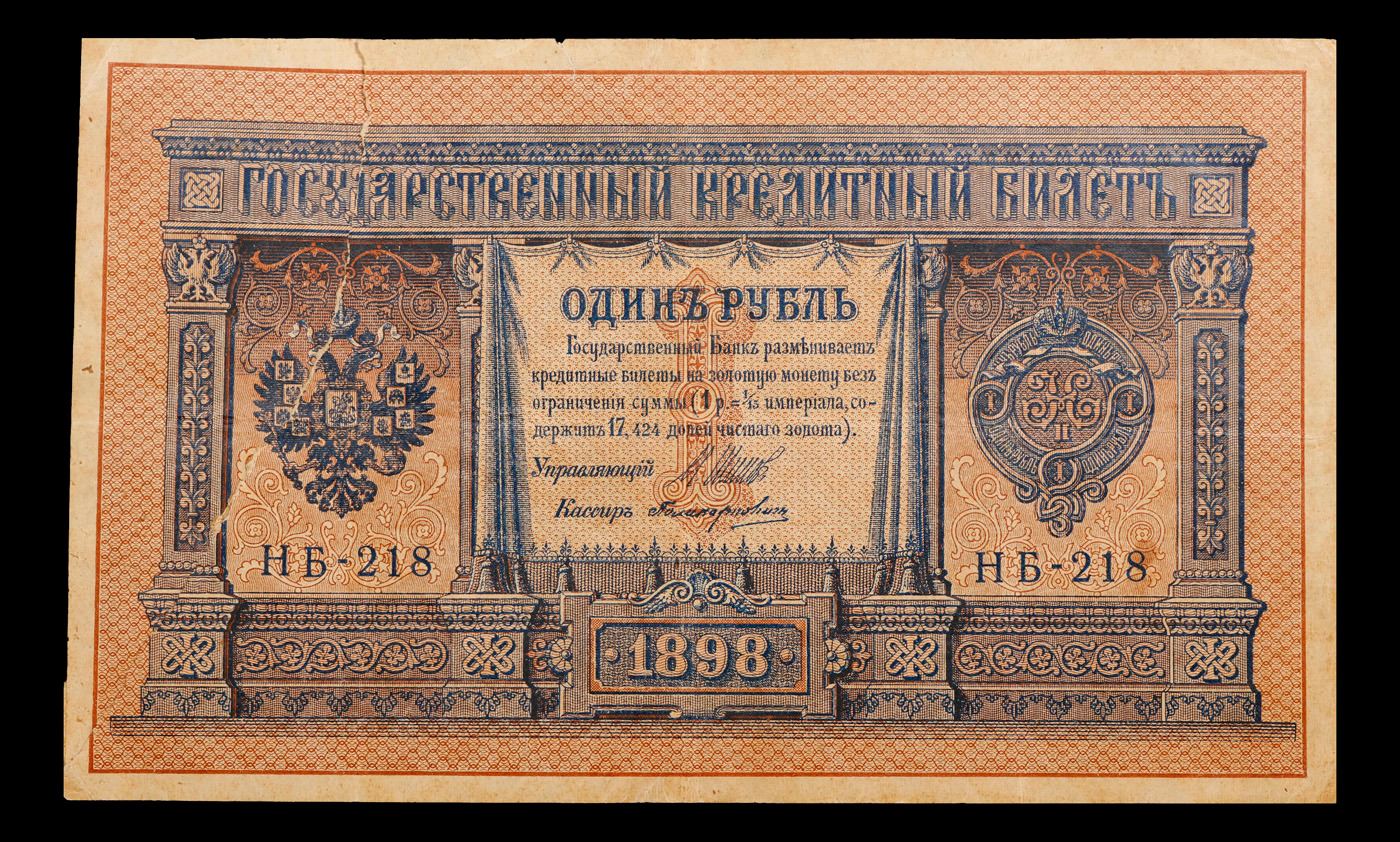 1898 Imperial Russia 1 Ruble Note P# 1D Grades Choice AU.