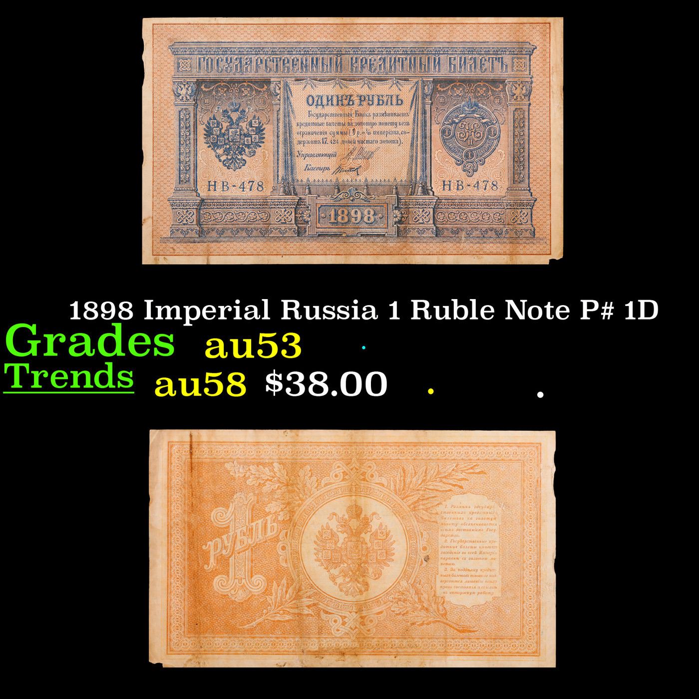 1898 Imperial Russia 1 Ruble Note P# 1D Grades Select AU.