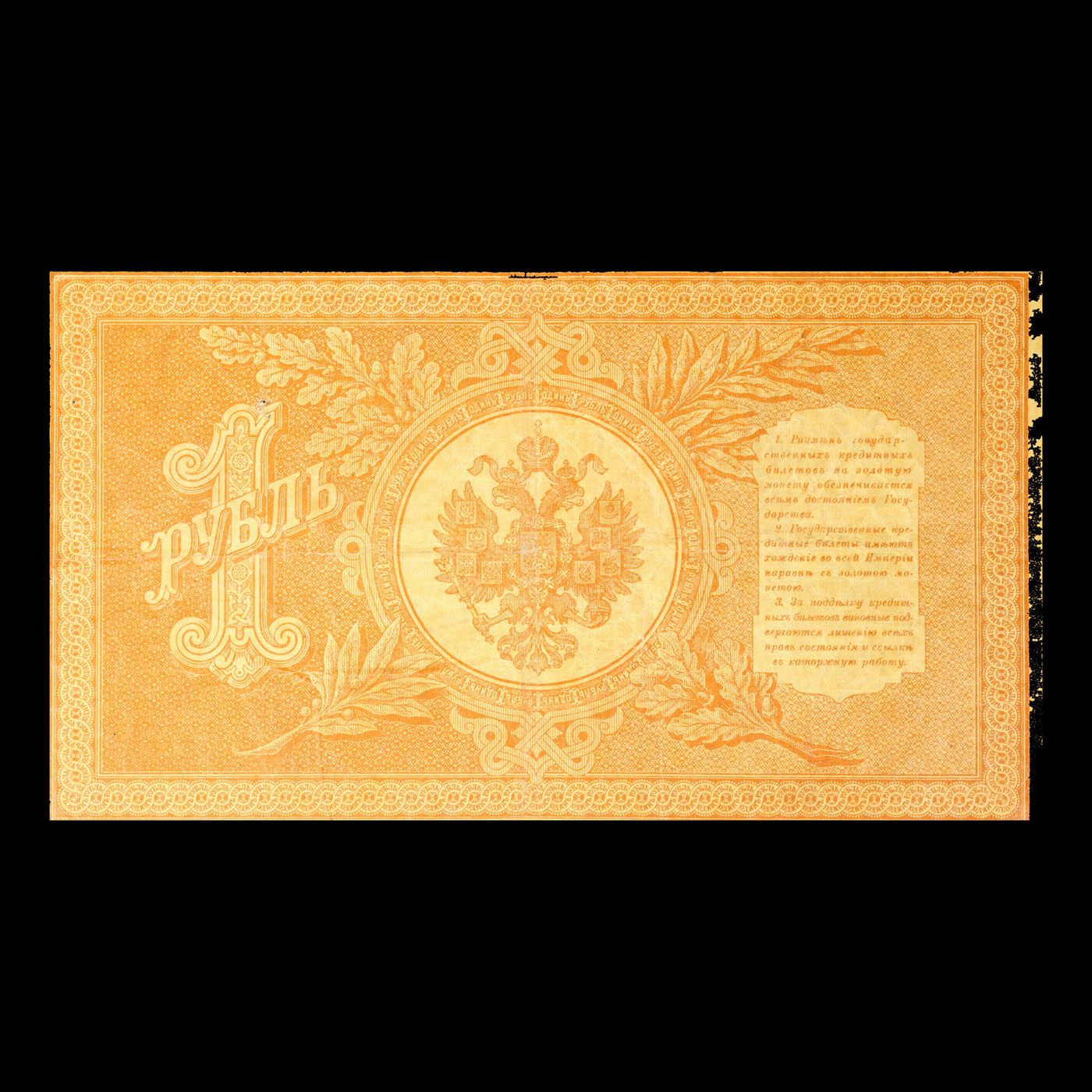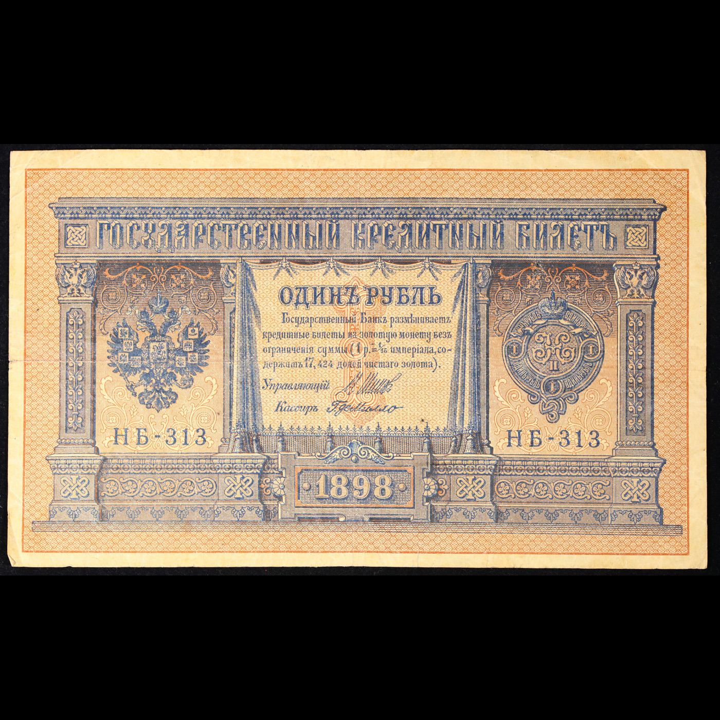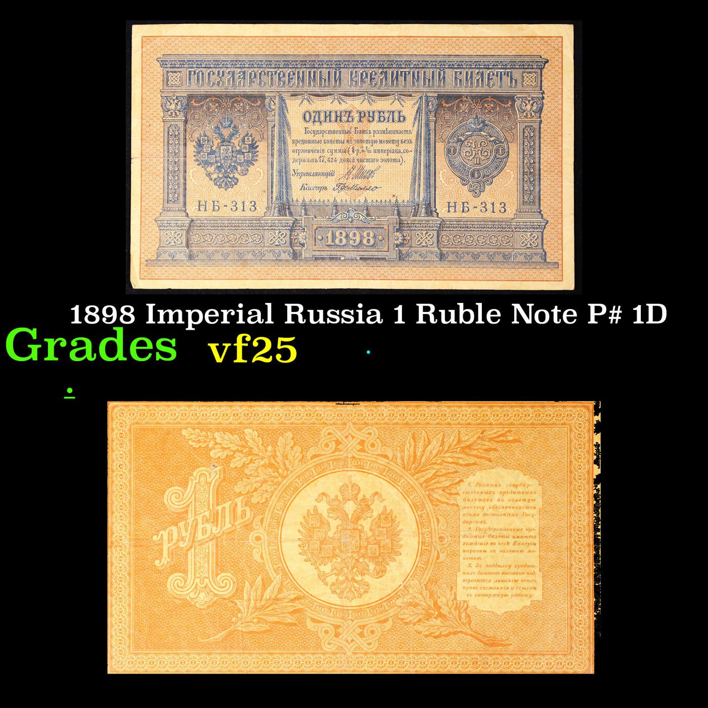 1898 Imperial Russia 1 Ruble Note P# 1D Grades vf+.
