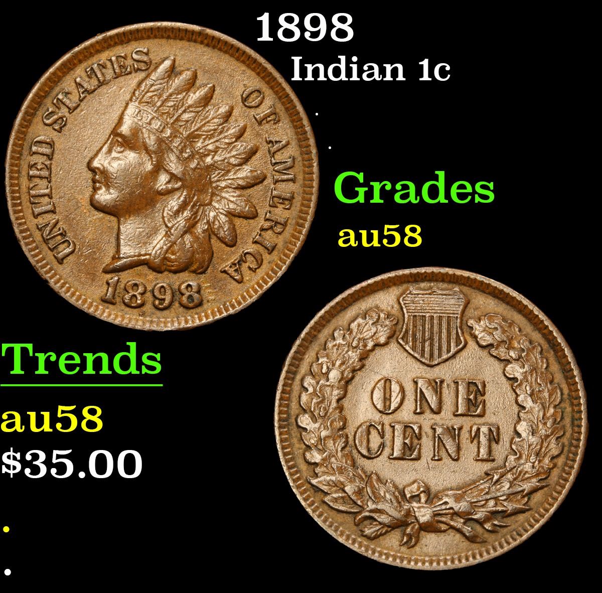 1898 . . Indian Cent 1c Grades Choice AU/BU Slider.