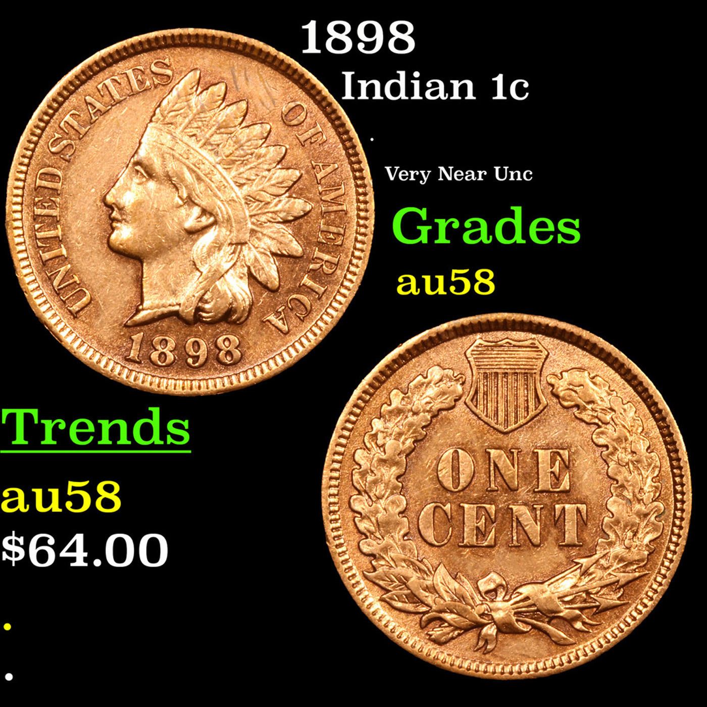 1898 Indian Cent 1c Grades Choice AU/BU Slider.
