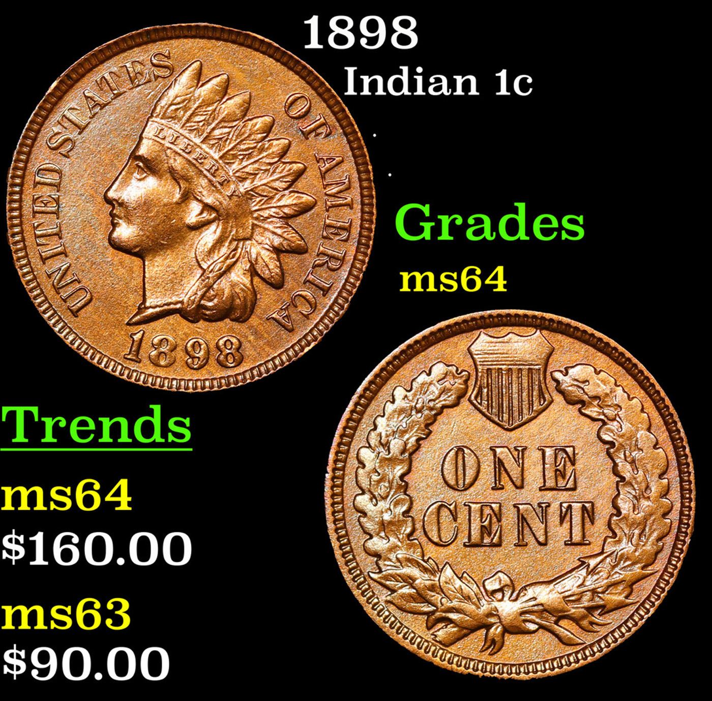 1898 Indian Cent 1c Grades Choice Unc.