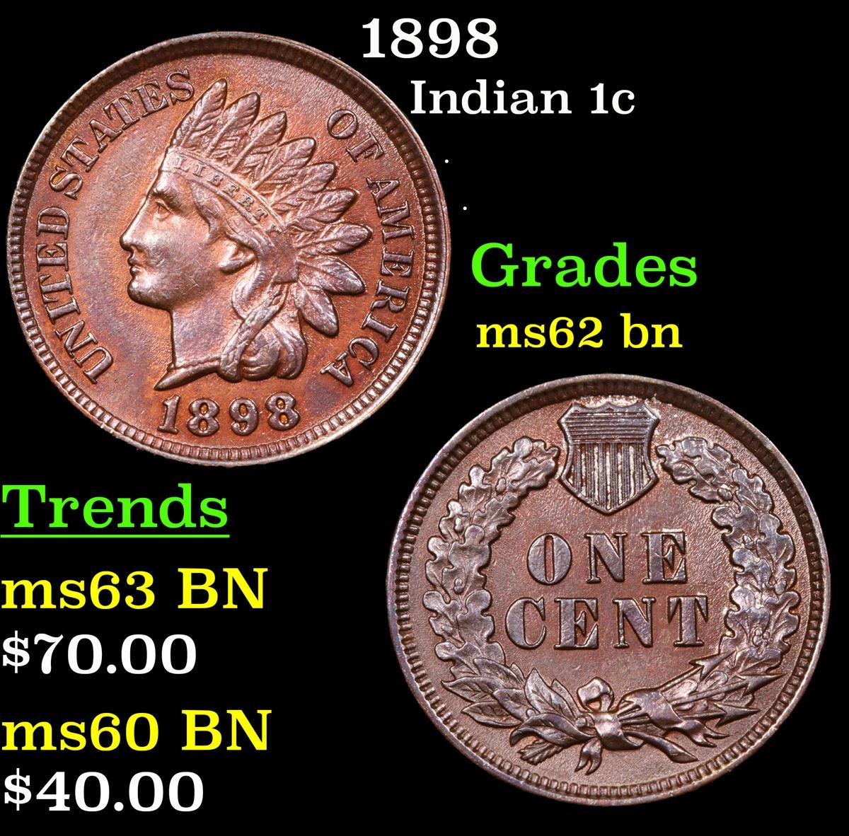 1898 . . Indian Cent 1c Grades Select Unc BN.