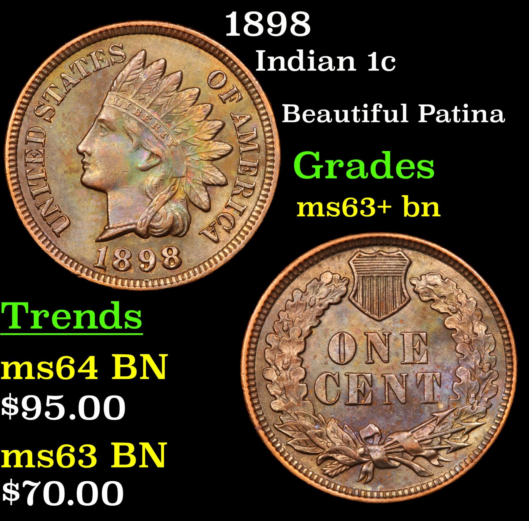 1898 Indian Cent 1c Grades Select+ Unc BN.