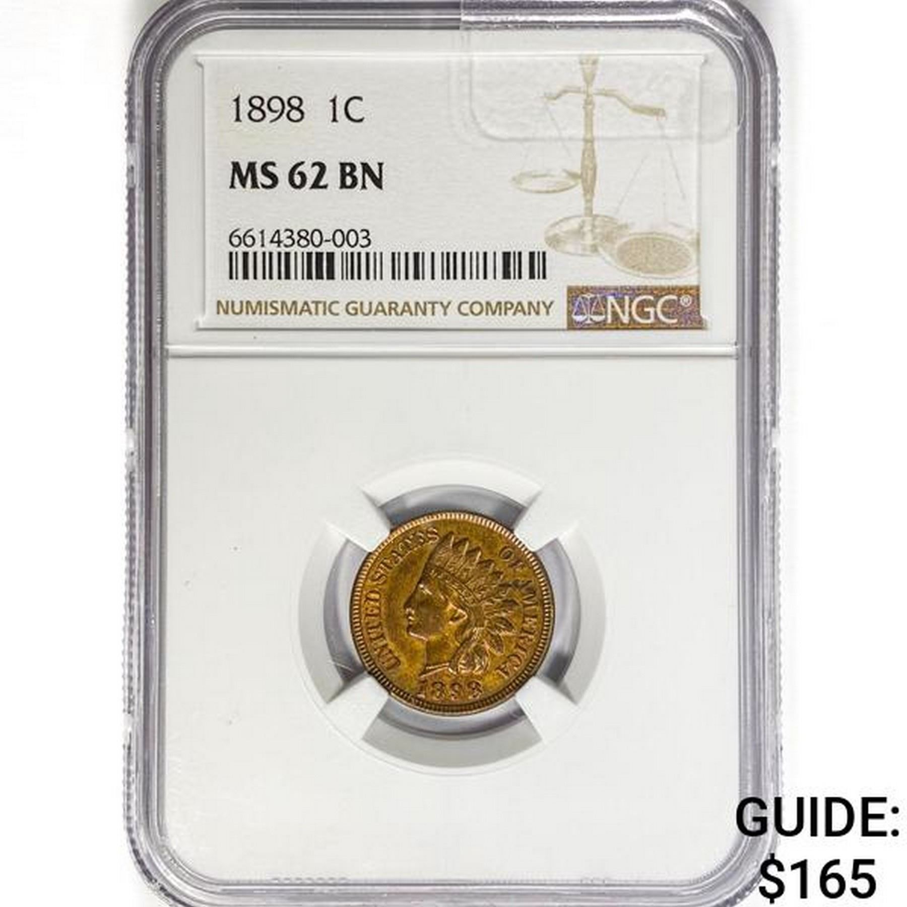 1898 Indian Head Cent NGC MS62 BN