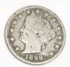 1898 *KEY DATE* LIBERTY "V" NICKEL RED BOOK VALUE IS $10.00+ *NICE EARLY VERY GOOD GRADE*!! LIBERTY NICKEL CAME OUT OF SAFE!! ***Coin, Currency & All Items Listed in this auction - Grades, Conditions and Values are not Safe Deposit Coins LLC Responsibilty. Grades, Condition and Values are determined by Consigner(s) & Buyers