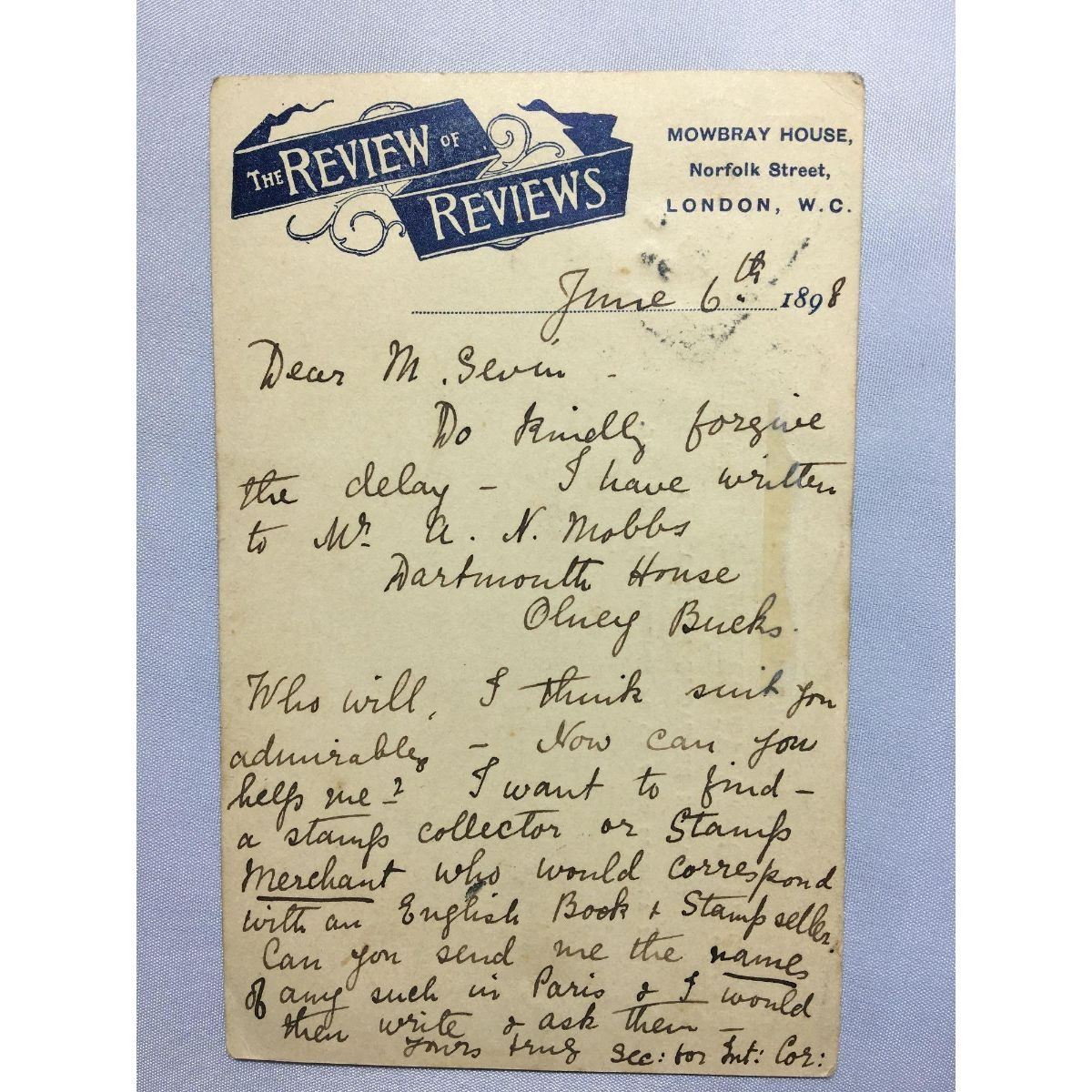 1898 Wimbledon stamped original iron gall handwritten post card in an envelope now in a protective sleeve with a British pennystamp. This handwritten postcard was written to Mr M Sevin of an 51 Boulevard de Versallies Address in France.