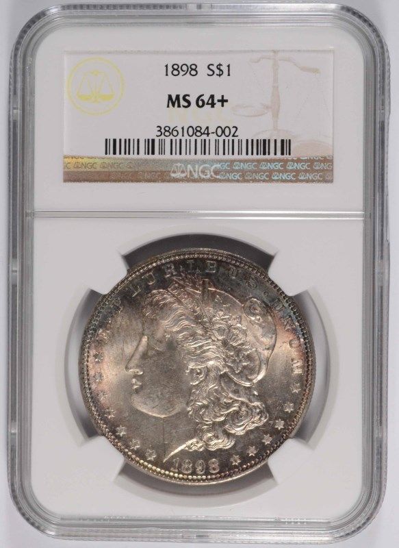 1898 MORGAN SILVER DOLLAR, NGC MS-64+ BEAUTIFUL PERIMETER COLORS!
