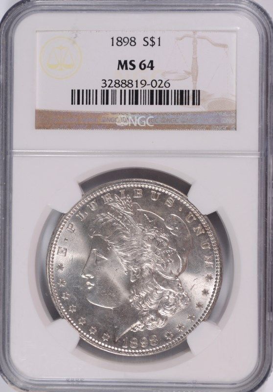 1898 MORGAN SILVER DOLLAR, NGC MS-64 BLAST WHITE