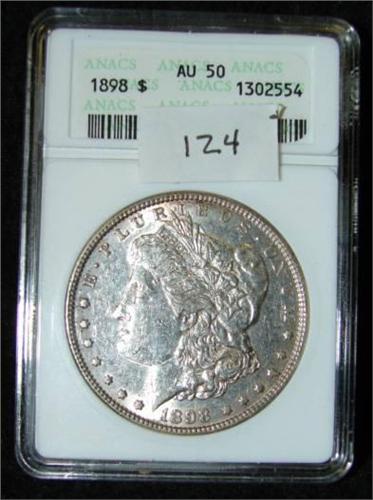 1898 MORGAN SILVER DOLLAR. Graded by ANACS. AU 50. 1302554.