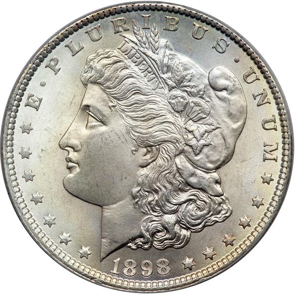 1898 Morgan Dollar. PCGS graded MS-65. Boldly struck with excellent clean surfaces thus our Premium Quality designation (PCGS # 7252) .