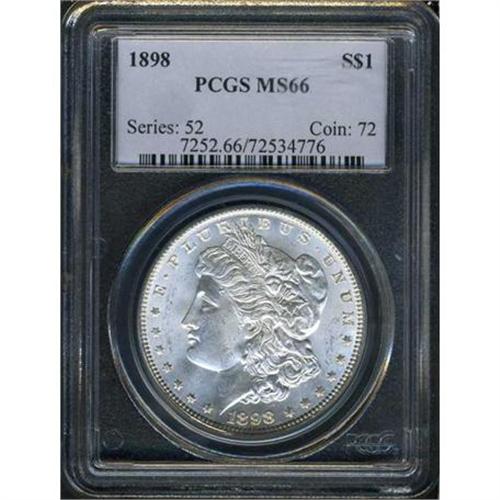 <b>1898 Morgan Dollar. PCGS graded MS66.</b> Frosty and attractive, a blazing gem <b>(PCGS # 7232)</b>