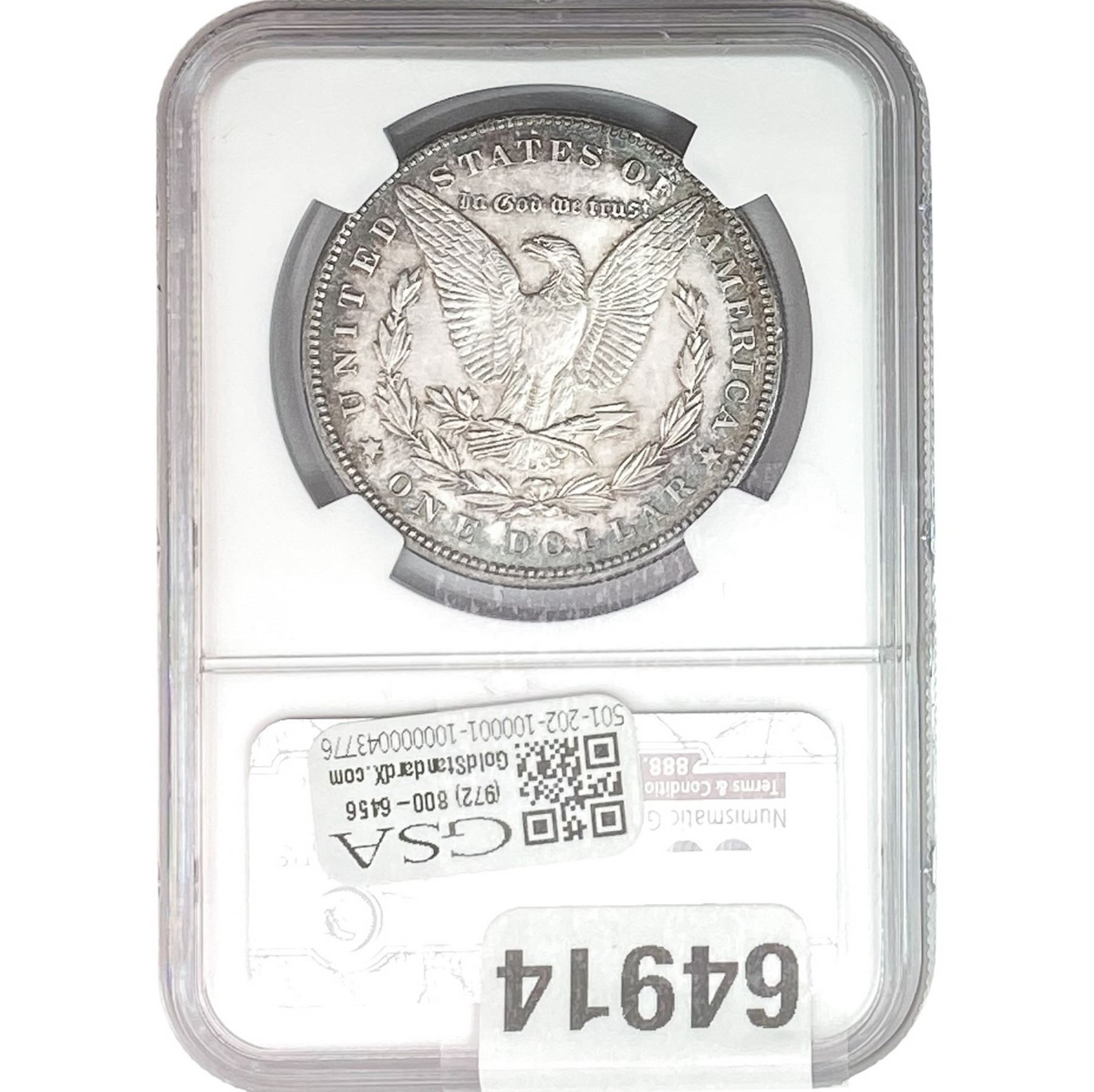 e. Coins sold referencing a third-party grading service are sold “AS IS” without any express or implied warranty, except for a guarantee by GSA that they are genuine. Removal or alteration of the holder, voids all of Bidder’s claims concerning that Product. Certain warranties may be available from the grading services and Bidders are referred to them for further details: Numismatic Guaranty Corporation (NGC), PO Box 4776, Sarasota, FL 34230, www.ngccoin.com/services/writtenguarantee.asp; Professional Coin Grading Services (PCGS), PO Box 9458, Newport Beach, CA 92658, www.pcgs.com/guarantee.html; ANACS, 6555 S. Kenton St., Ste. 303, Englewood, CO 80111; and Independent Coin Grading Co. (ICG), 7901 East Bellview, Ave., Suite 50, Englewood, CO 80111.
