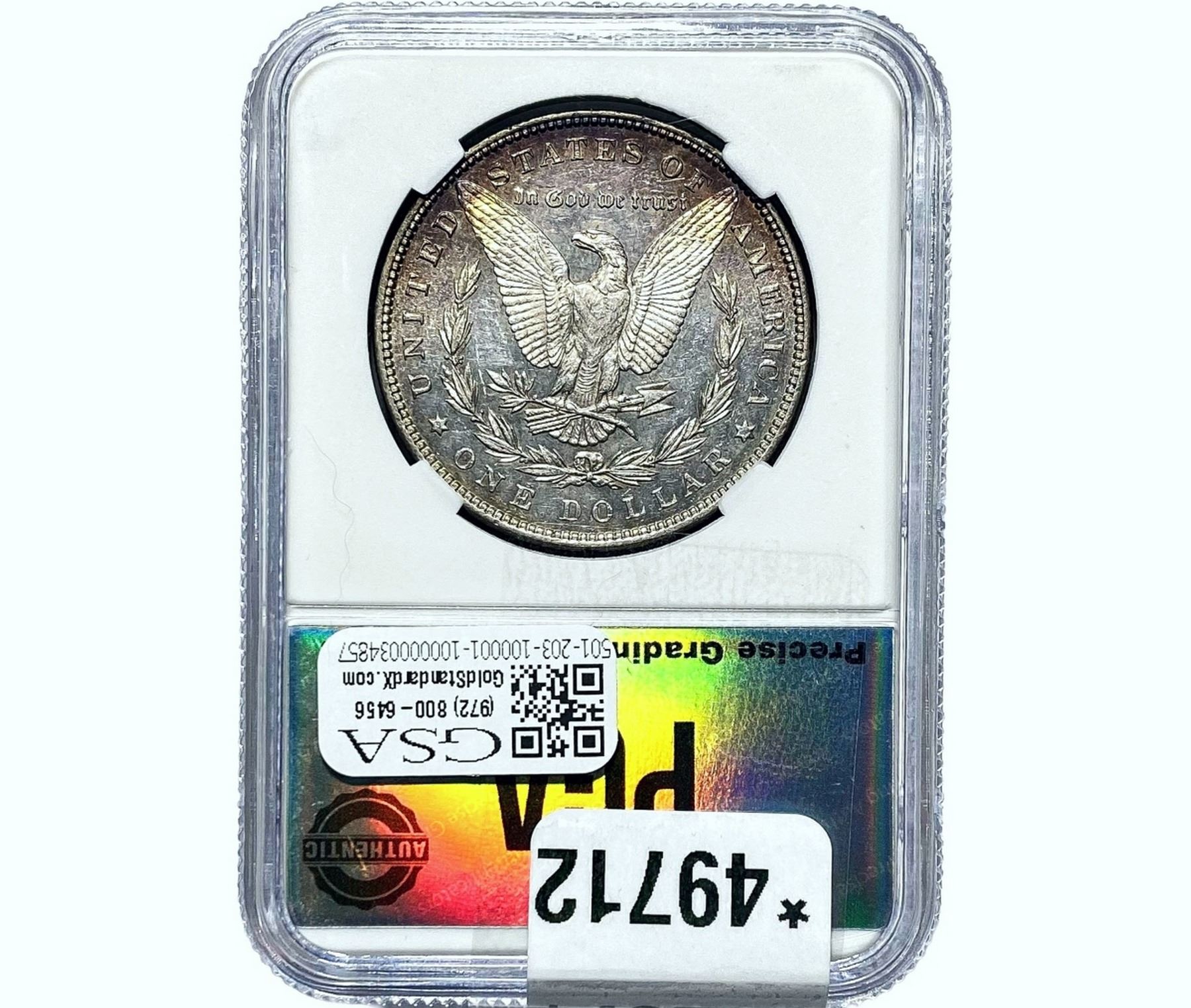 e. Coins sold referencing a third-party grading service are sold “AS IS” without any express or implied warranty, except for a guarantee by GSA that they are genuine. Removal or alteration of the holder, voids all of Bidder’s claims concerning that Product. Certain warranties may be available from the grading services and Bidders are referred to them for further details: Numismatic Guaranty Corporation (NGC), PO Box 4776, Sarasota, FL 34230, www.ngccoin.com/services/writtenguarantee.asp; Professional Coin Grading Services (PCGS), PO Box 9458, Newport Beach, CA 92658, www.pcgs.com/guarantee.html; ANACS, 6555 S. Kenton St., Ste. 303, Englewood, CO 80111; and Independent Coin Grading Co. (ICG), 7901 East Bellview, Ave., Suite 50, Englewood, CO 80111.