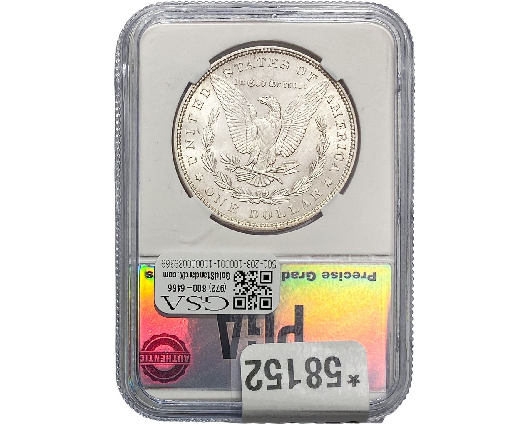 l. All non-certified coins and currency are guaranteed genuine, but are not guaranteed as to grade, since grading is a matter of opinion, an art and not a science, and therefore the description rendered by GSA or any third-party grading service may not agree with the opinion of others (including trained experts), and the same expert may not grade the same item with the same grade at two different times. GSA may, but is not obligated to, express an opinion as to non-certified numismatic items, in GSA’s opinion, or by its employees’ experience and the current interpretation of the American Numismatic Association’s standards as of the date the catalog was prepared. There is no guarantee or warranty expressed or implied that the grading opinions utilized by GSA, if any, will meet the standards of any grading service at any time in the future.