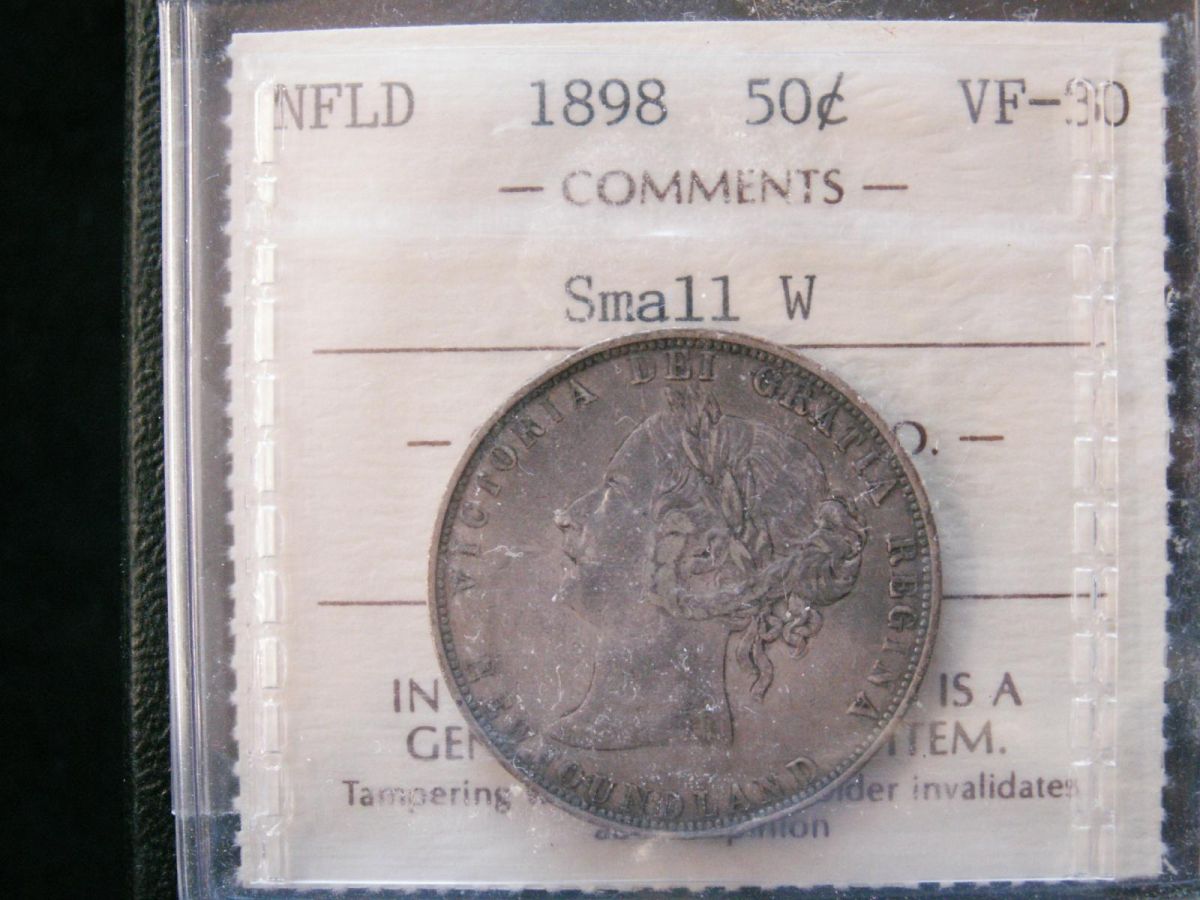 1898 Nfld 50¢ Small W ICCS VF30. Dark finish.