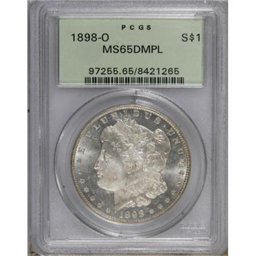 <B>1898-O $1 MS65 Deep Mirror Prooflike PCGS.</B></I> PCGS Population (149/41). NGC Census: (61/17). Numismedia Wsl. Price for NGC/PCGS coin in MS65: $825. (#97255)<BR><BR><b>Shipping:</b> Coins & Currency (<a target="_blank" href="http://www.heritageauctions.com/common/shipping.php">view shipping information</a>)