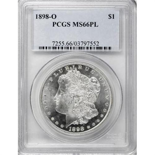 <B>1898-O $1 MS66 Prooflike PCGS.</B></I> An amazing prooflike example, especially for the date. It is also sharply defined, including strong hair detail over the ear and full breast feathers. Population: 45 in 66, 1 finer (12/07).<BR><BR><B>Coin Engraver:</B> George T. Morgan<BR><BR><b>Shipping:</b> Coins & Currency (<a target="_blank" href="http://www.heritageauctions.com/common/shipping.php">view shipping information</a>)