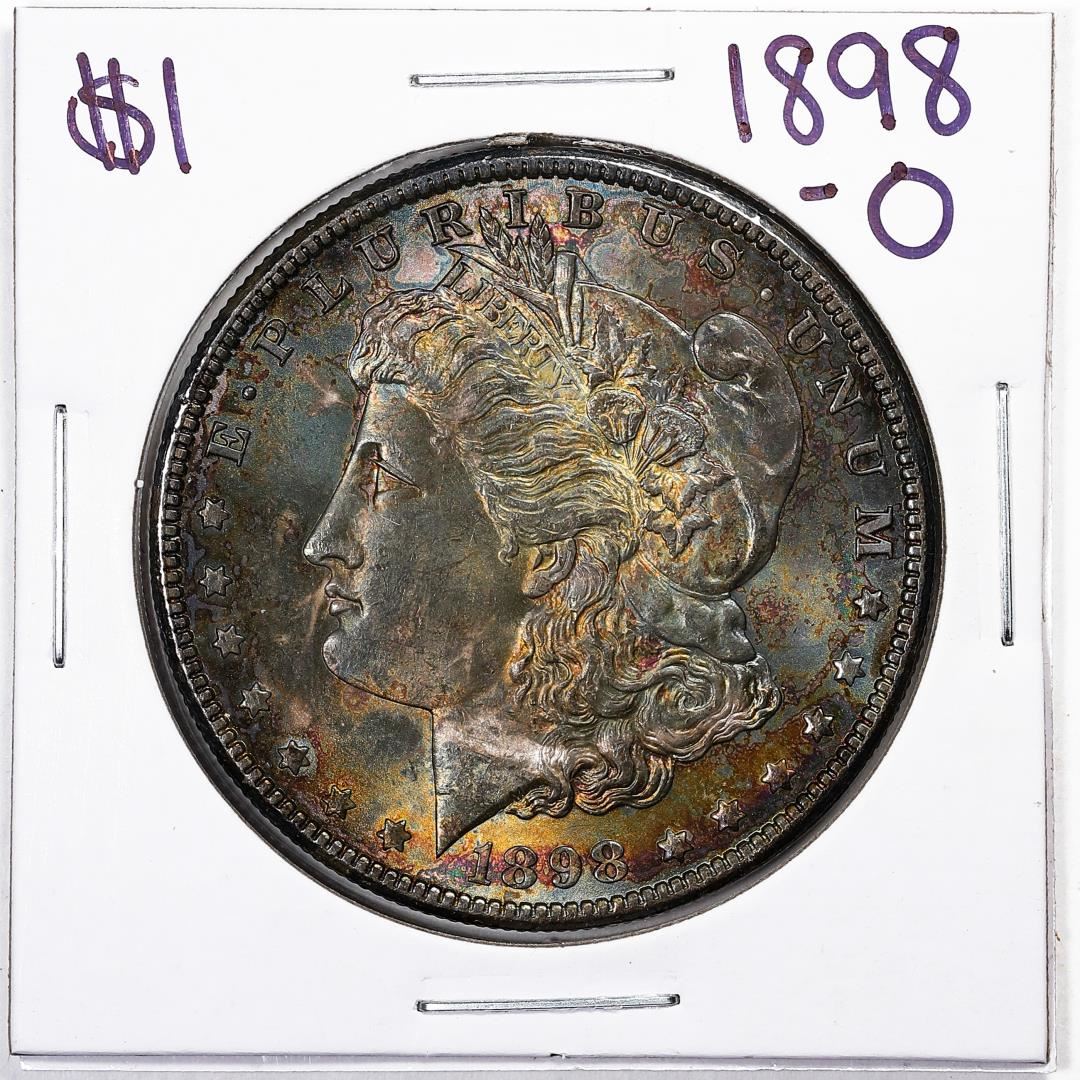 One 1898-O $1 Morgan Silver Dollar Coin Amazing Toning.